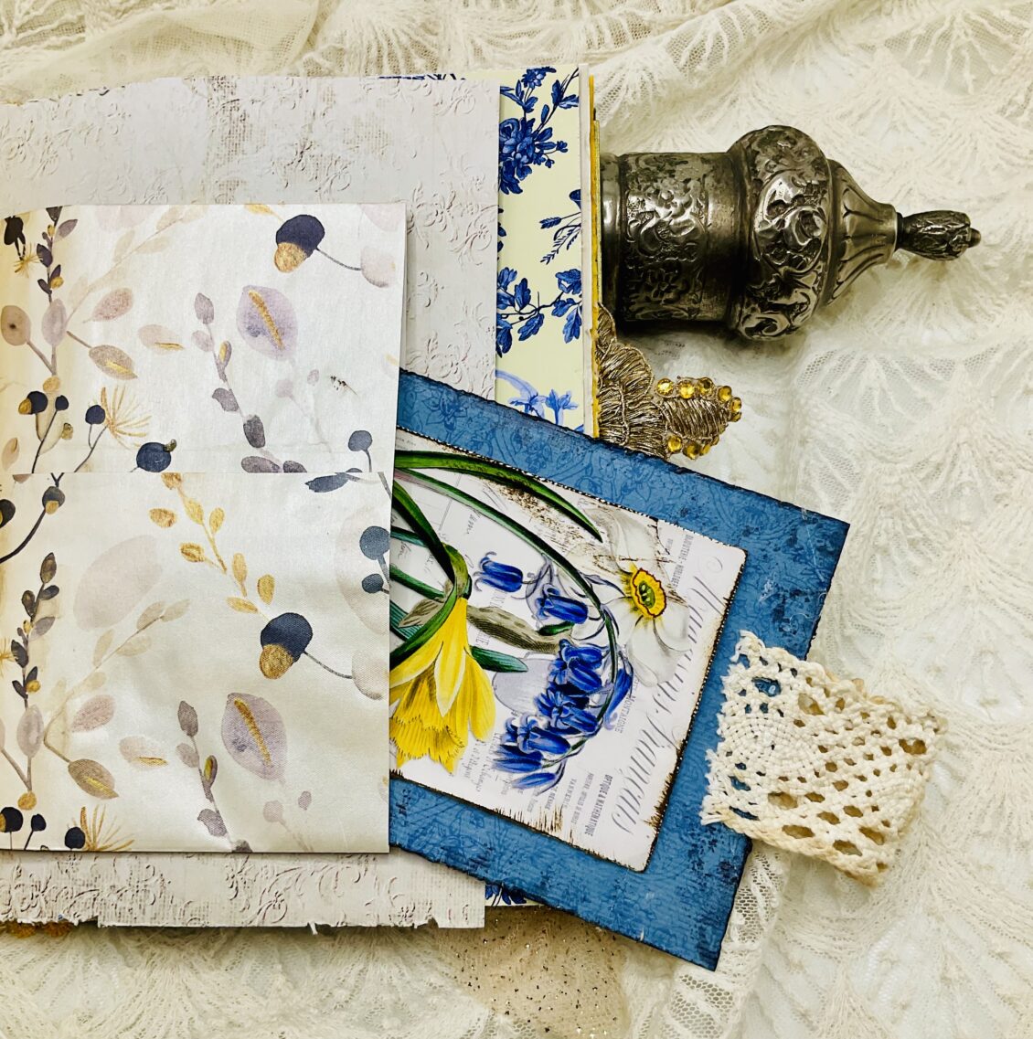 - Decorative Elements: Inside, you’ll find beautiful printables from The Graphics Fairy, along with exquisite laces and appliqués that add layers of texture and depth.