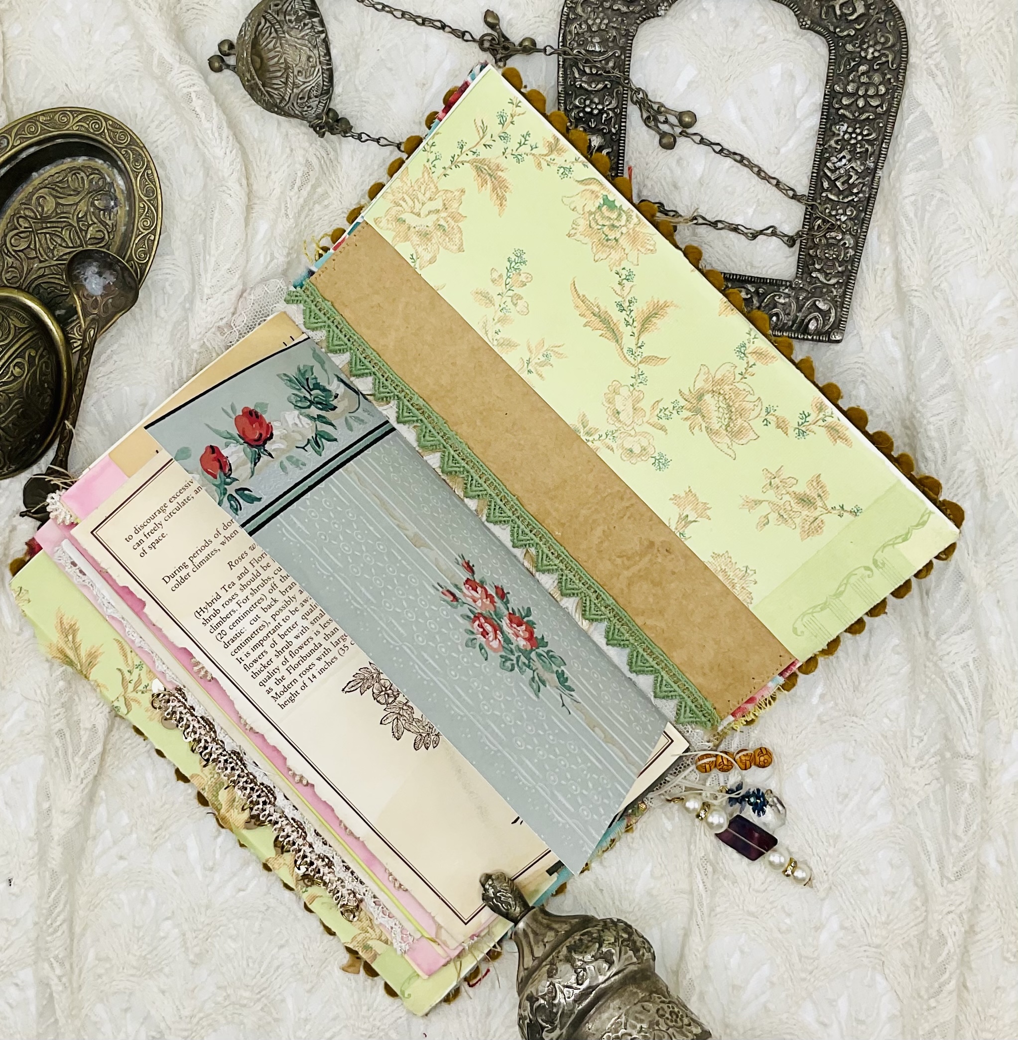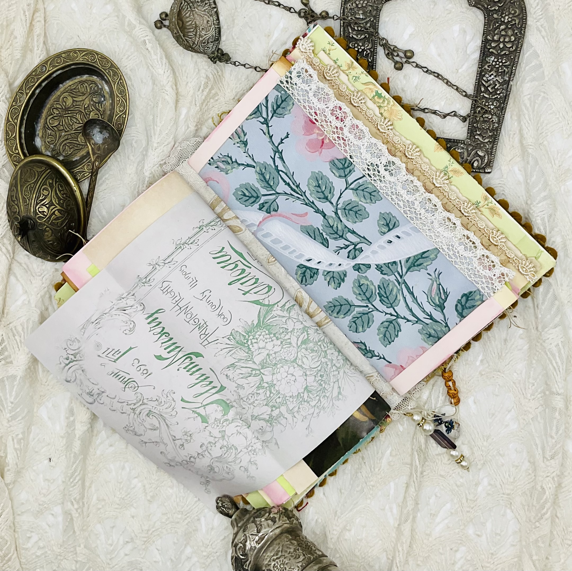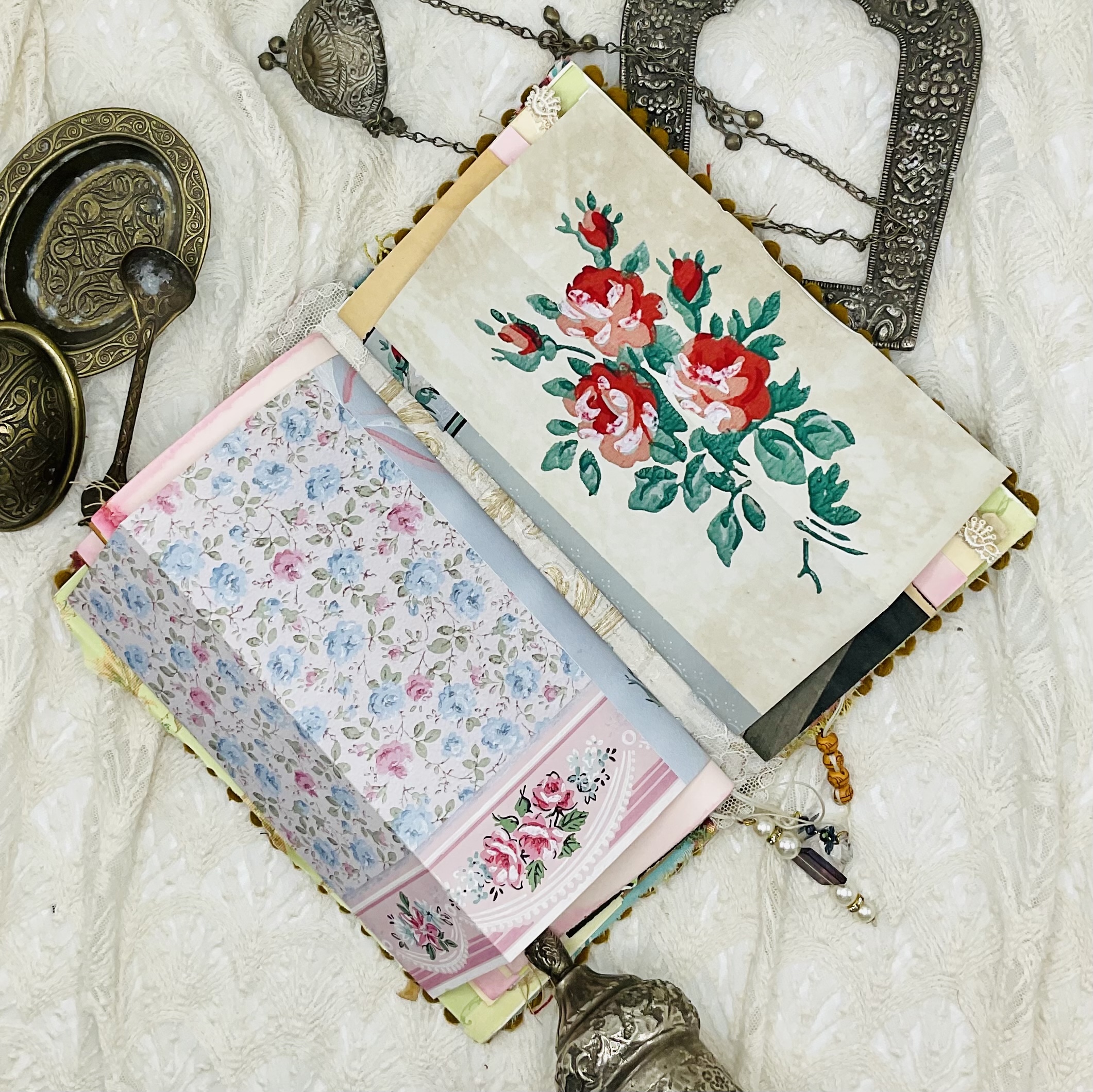 Delicate lace and trim details further enhance the journal’s elegance, while functional pockets, tucks, and envelopes offer versatile storage solutions for your keepsakes. This journal is perfect for anyone who values craftsmanship, cultural authenticity, and creative expression.
