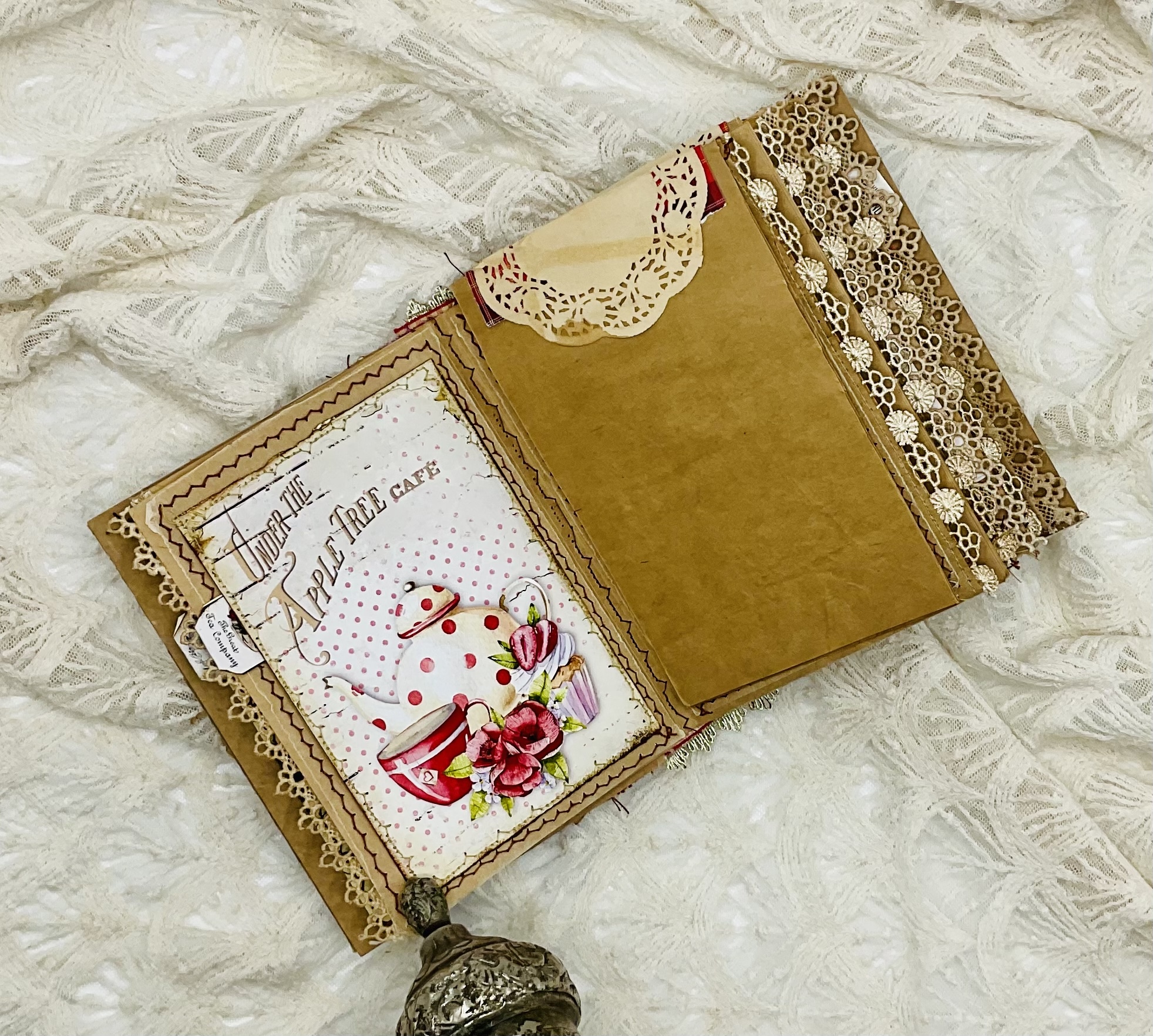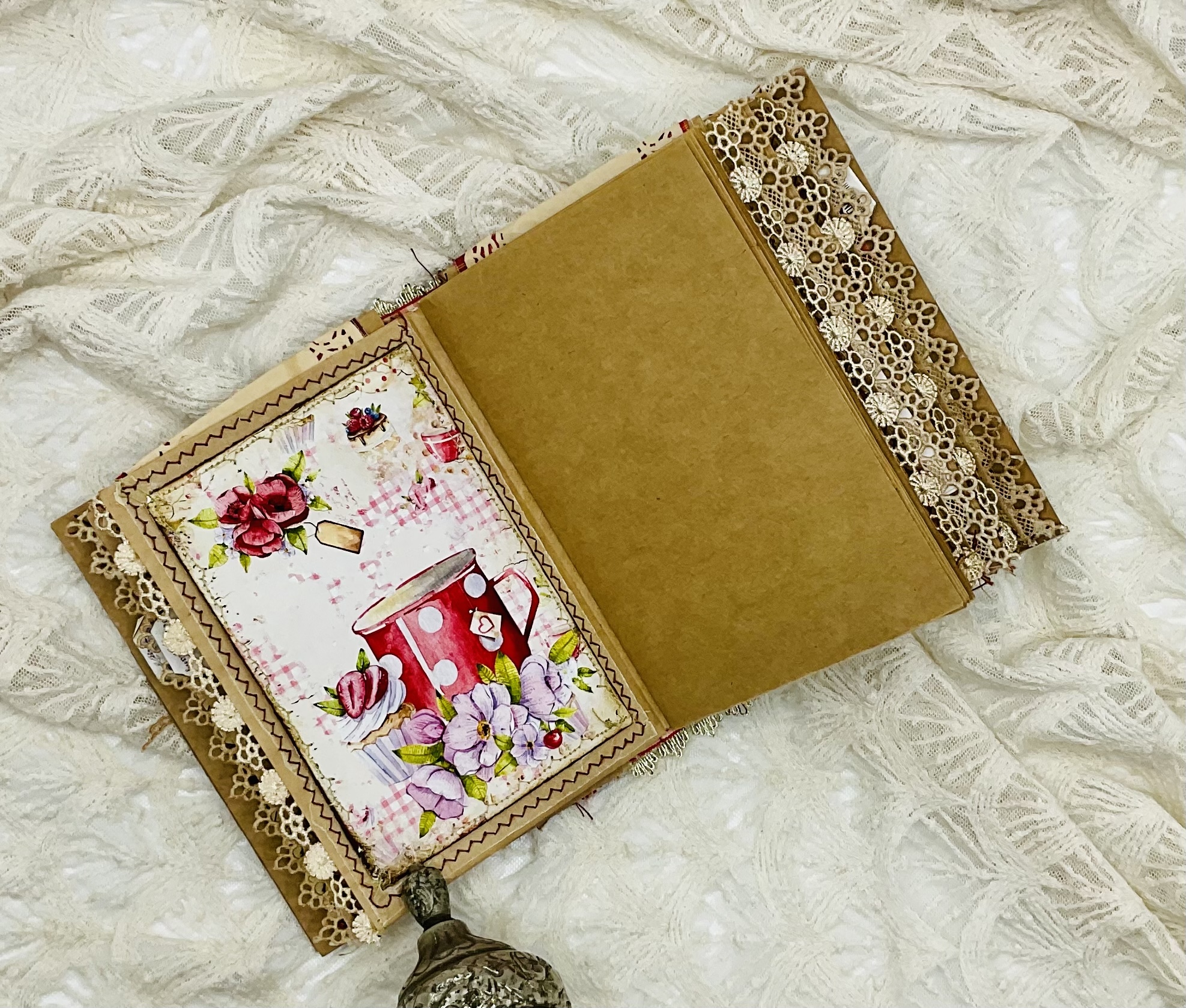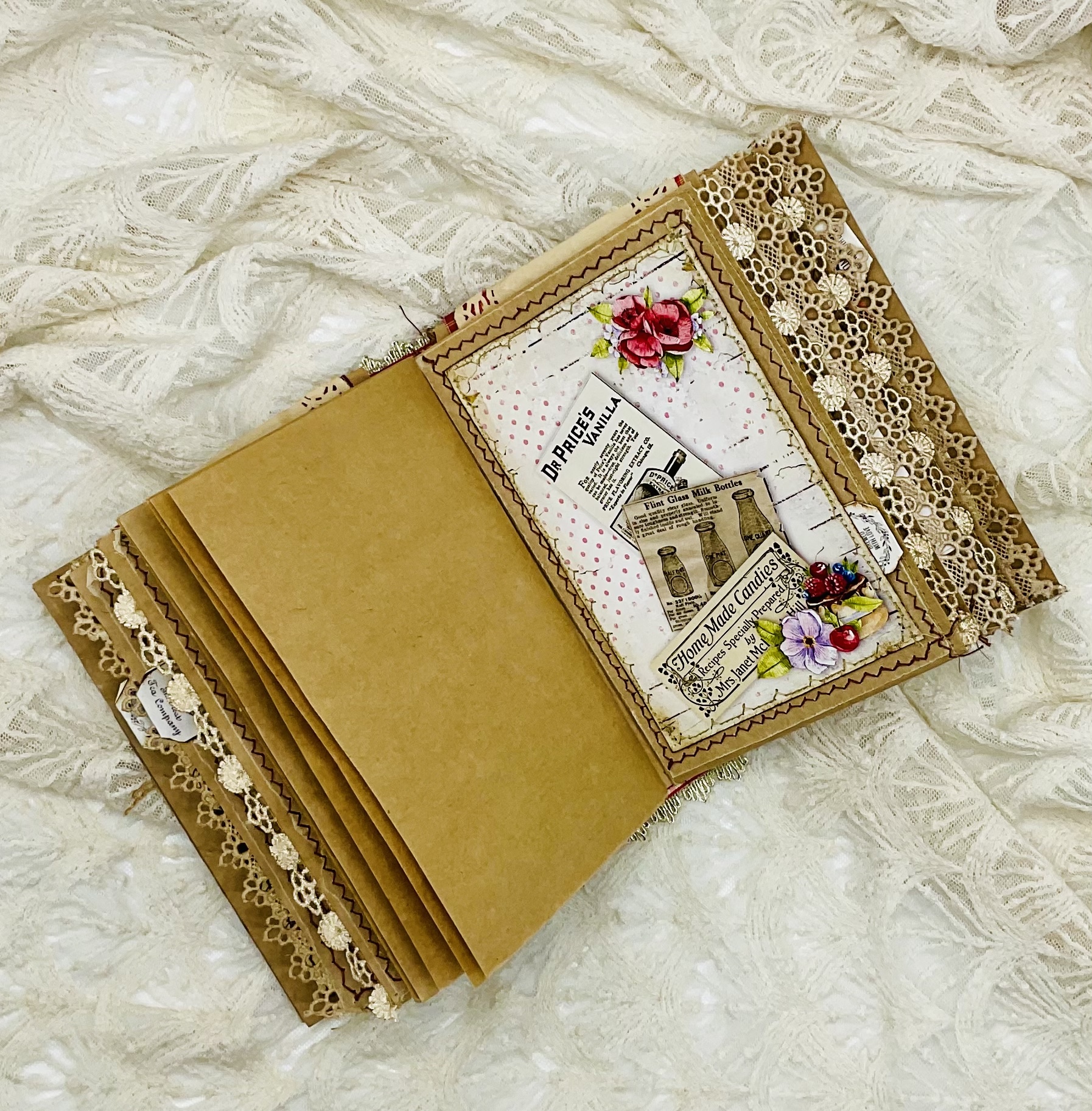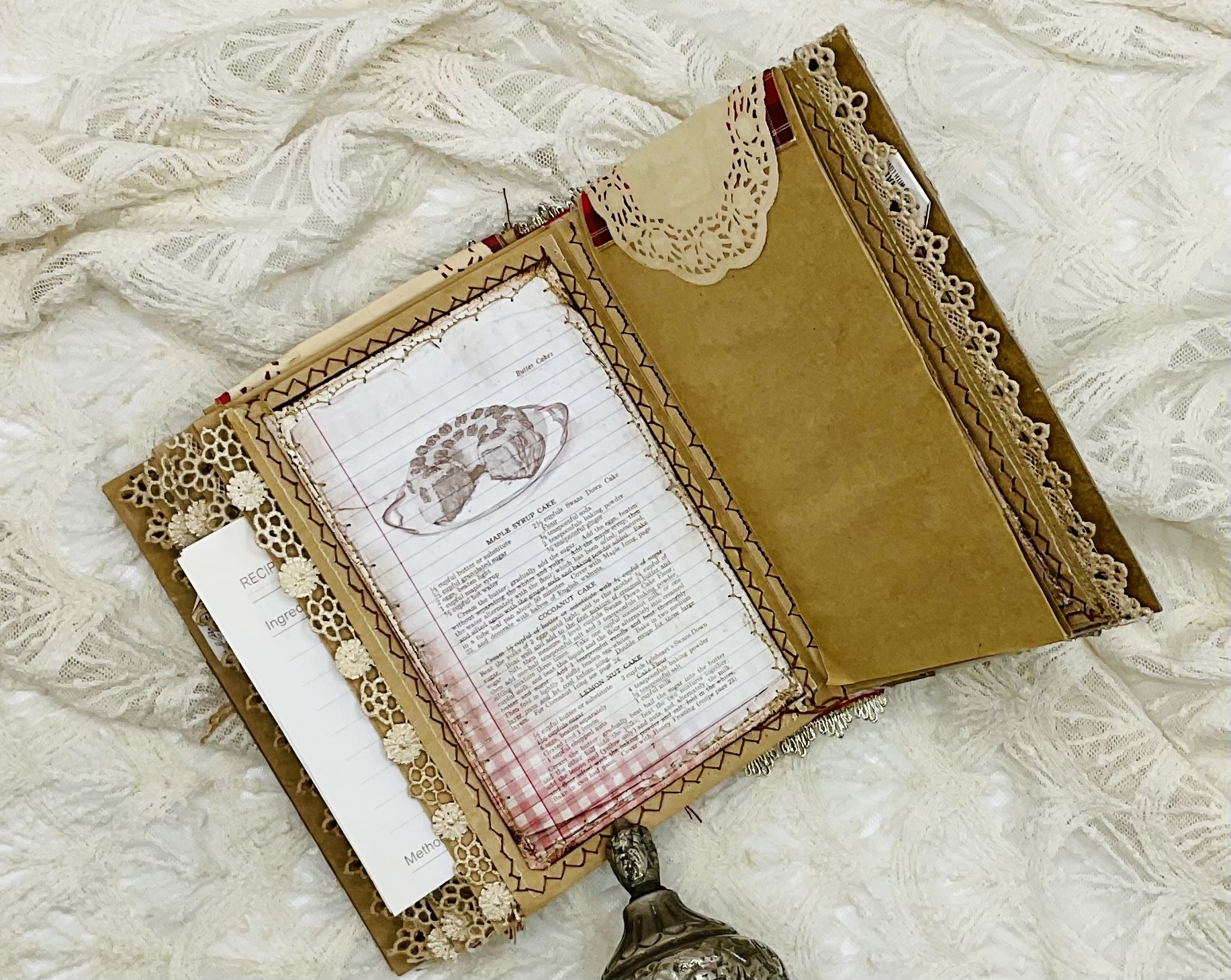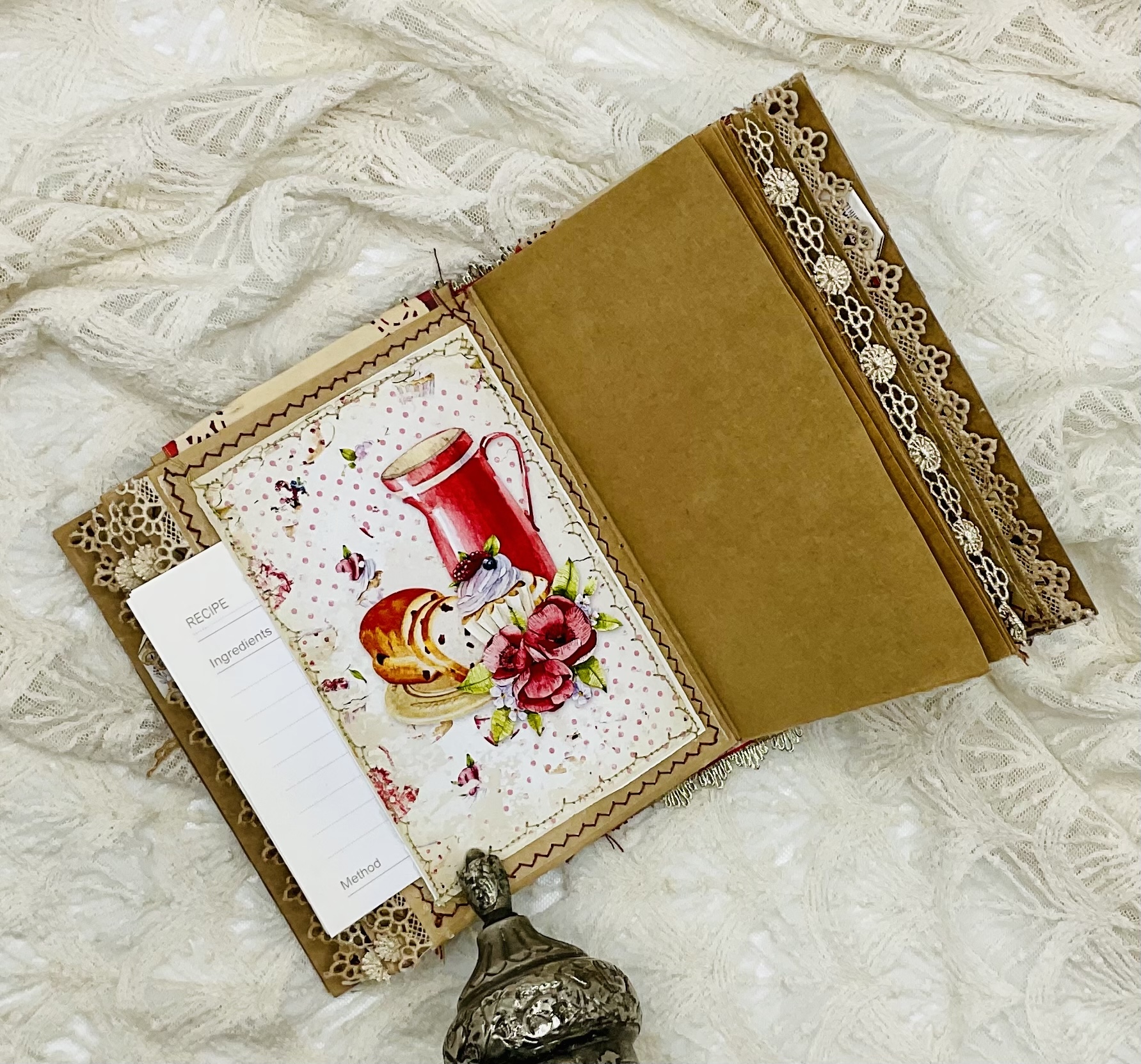 Discover the perfect blend of creativity and functionality with our Handmade Vintage Junk Journal Recipe Book. This A5-sized, hand-bound recipe journal is an exquisite choice for anyone passionate about cooking and collecting recipes. Each page is adorned with delicate lace details and whimsical artwork, making it a beautiful keepsake for your culinary creations.